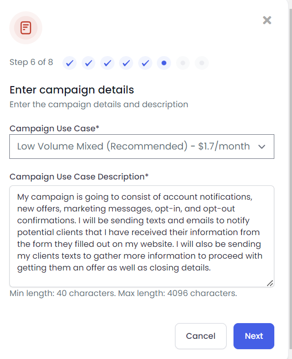Step 6: Campaign Details - Be very detailed