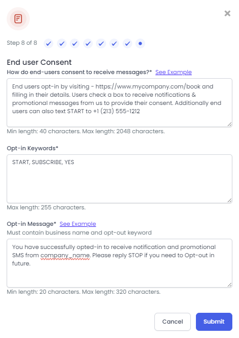 Step 8: End User Consent & Opt-In Message