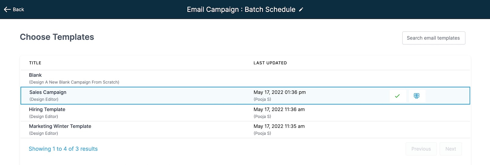 2. The Next Step is to select the Email Template which you would like to create a Marketing Email Campaign.