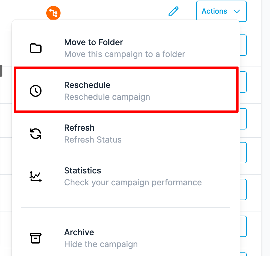 - There will be an option to delete or reschedule the email campaign. If the user wants to reschedule the campaign, they can click reschedule and set the date-time of the campaign.
