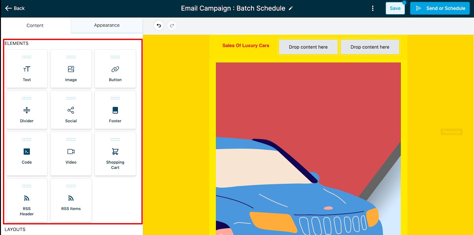 3. Now it will take to the builder, where you'll design your content and place the necessary elements for campaigns.