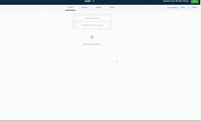 A menu will appear, the third column will say “Choose a Workflow Trigger” Select and scroll down till you see “Form Submitted”