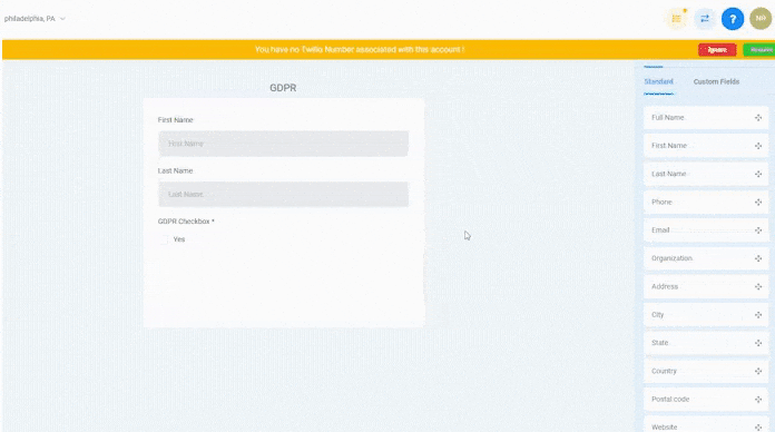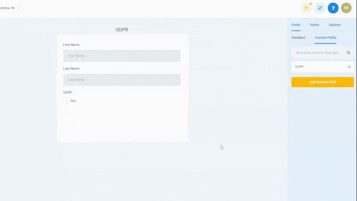 Hover your mouse over and click on the GDPR Checkbox field On The Form.