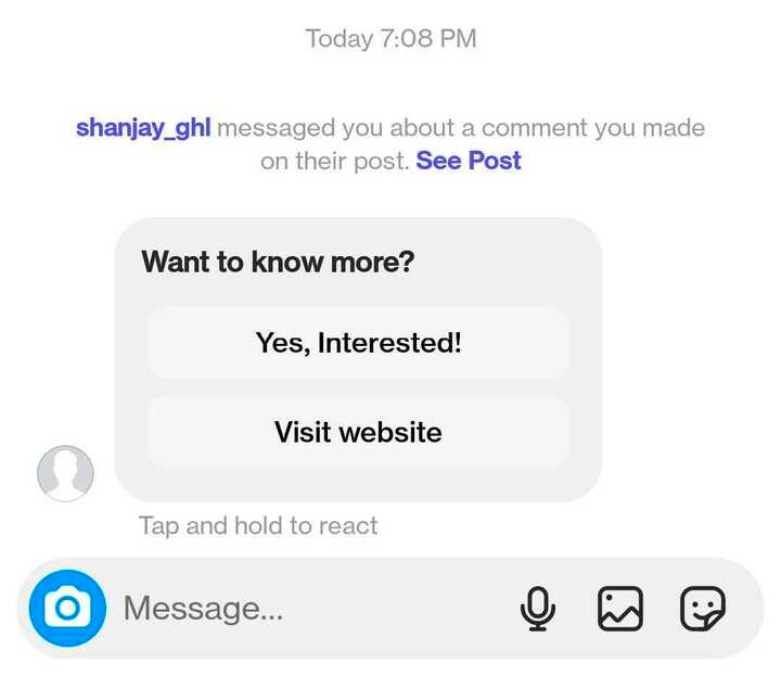 Here is how the message will look in Facebook and Instagram