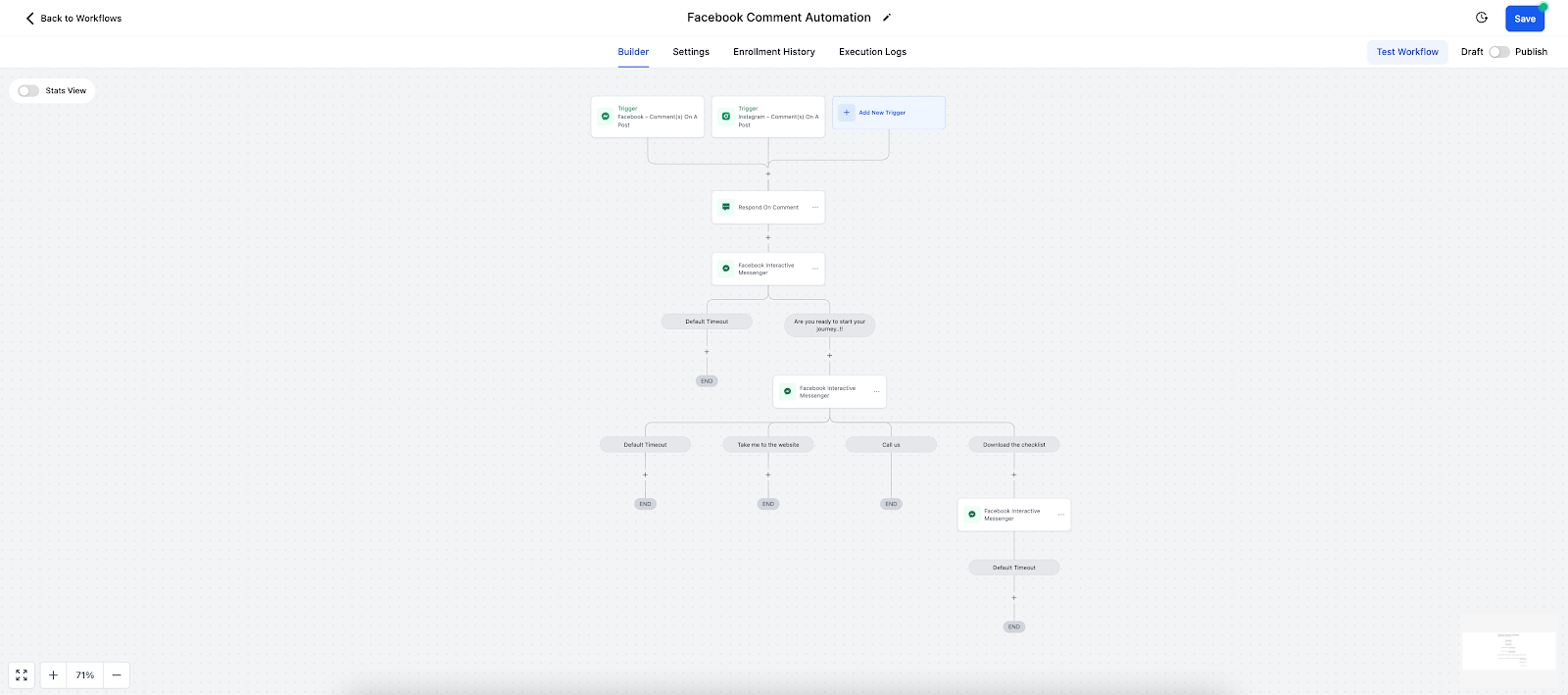 When using Reply to comment via DM, if the contact has not replied to the First Interactive Messenger action then Interactive Messenger Action will not work in the Default Timeout Branch.