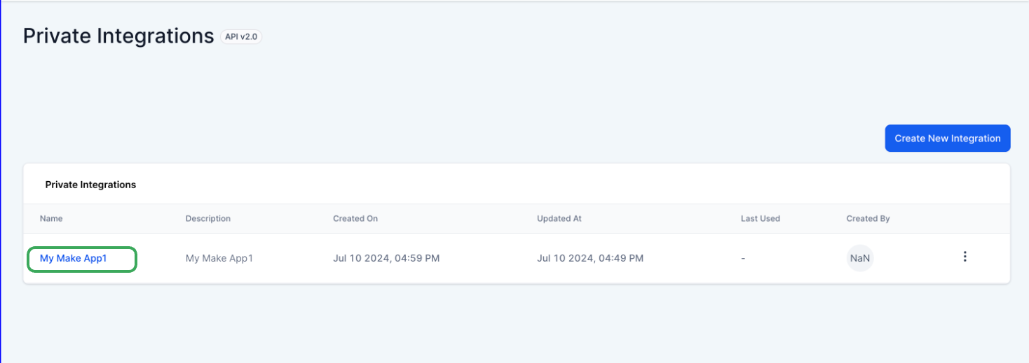 Step 1: Navigate to Private Integrations under settings, and click on the Private Integration you have created.