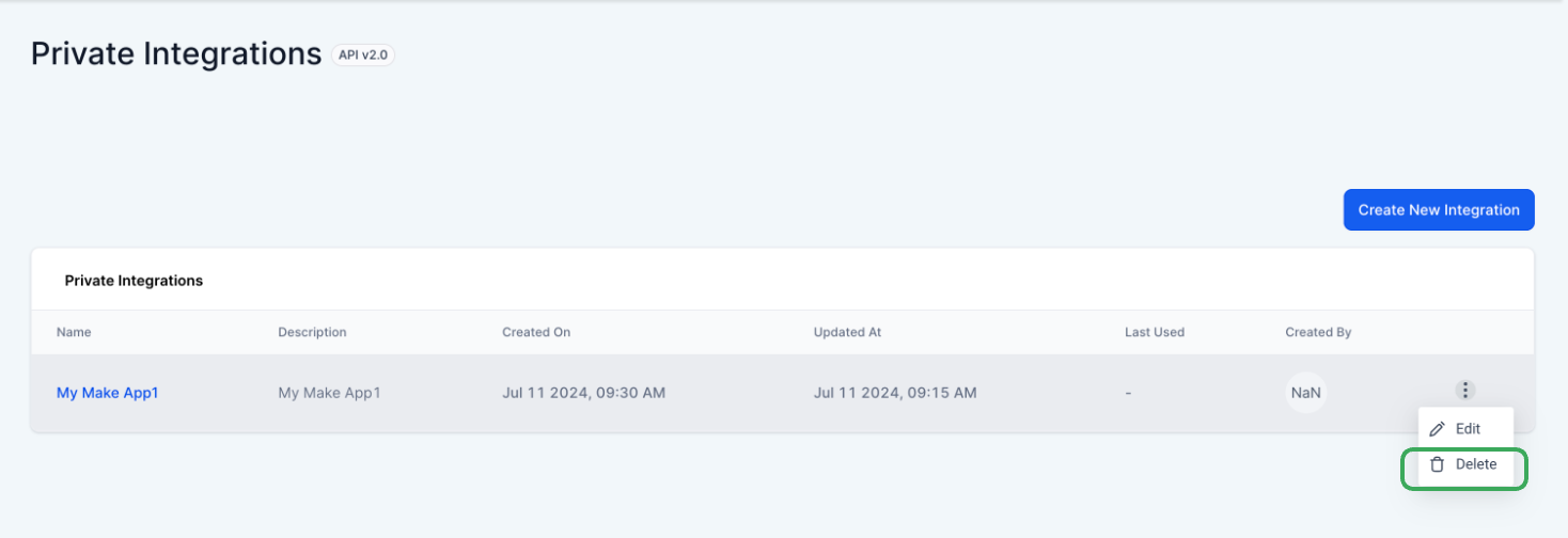 To do so, navigate to Private Integrations under settings, and select "Delete" from the three-dot menu.