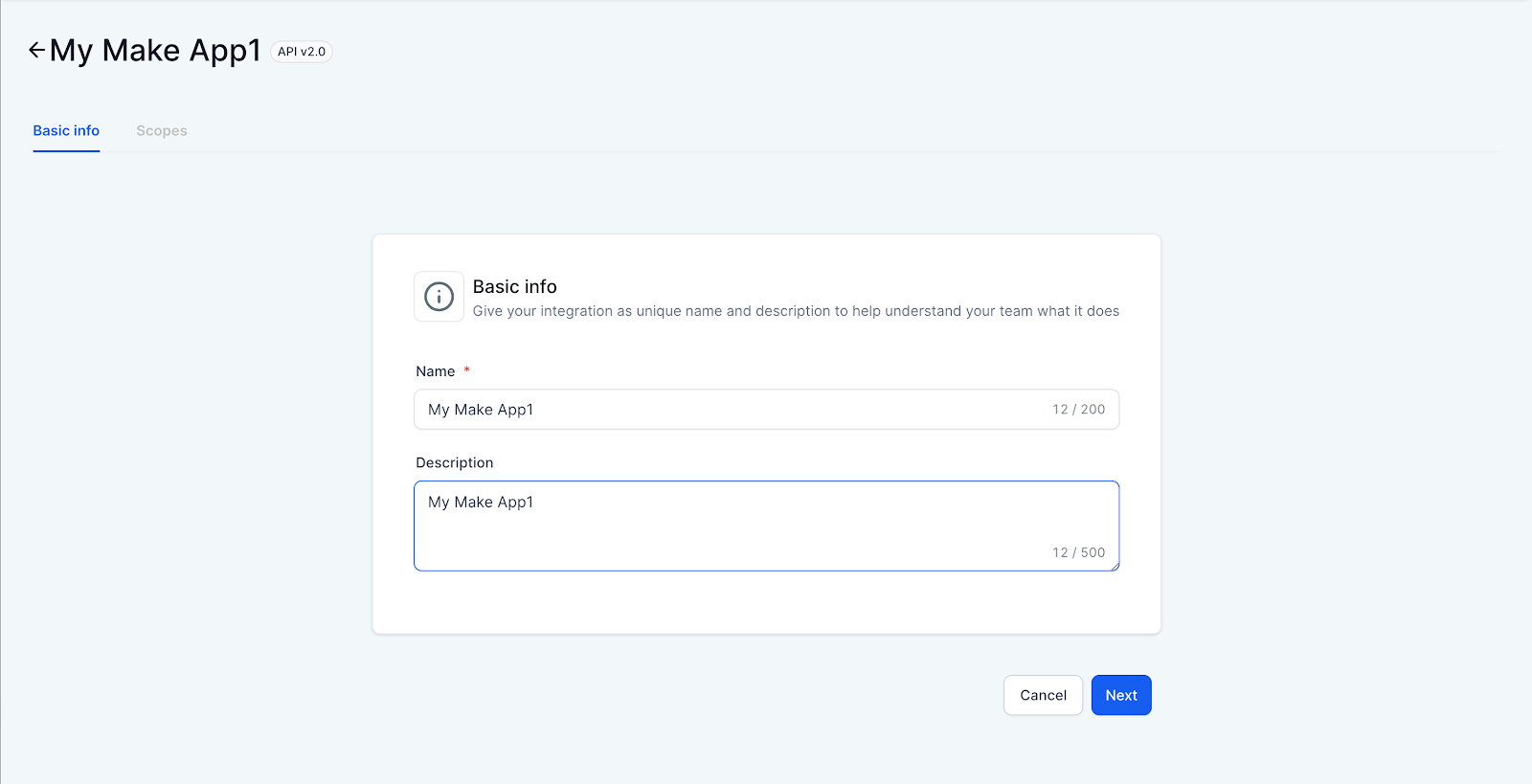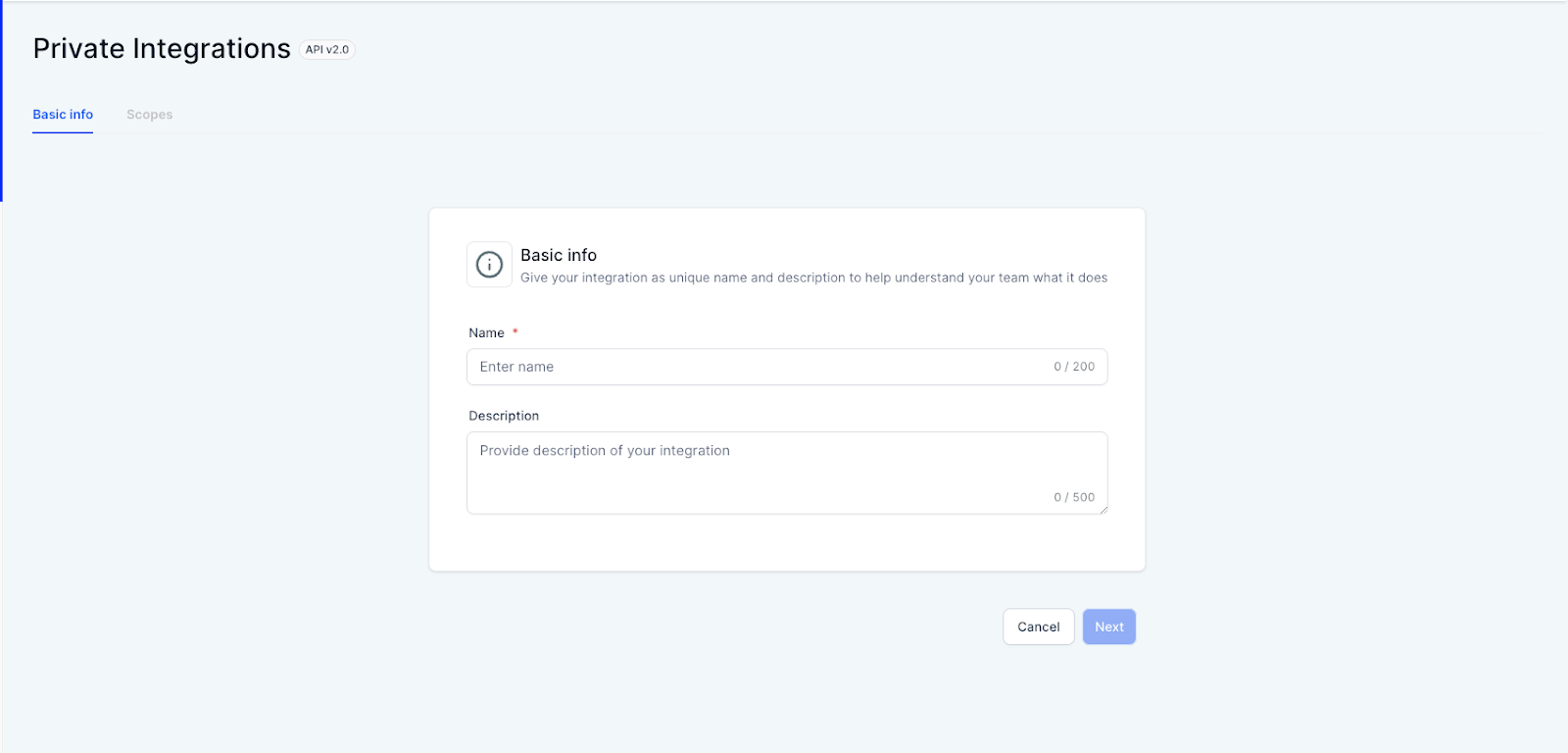 Step 2: Give your Private Integration a name and description to help you and your team identify what it's for.