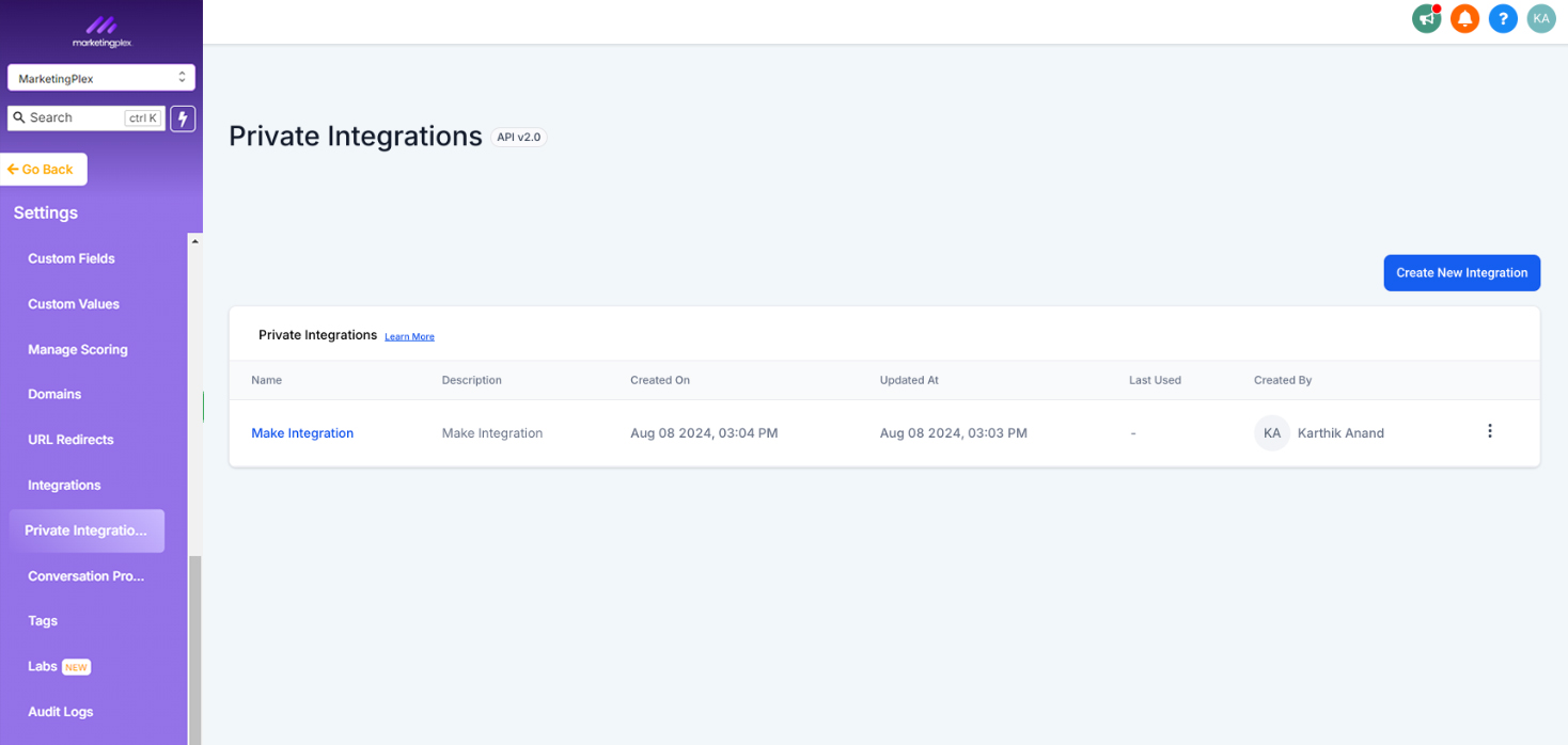 Private Integrations allows you to build powerful custom integrations between your MarketingPlex account and any other third party app.