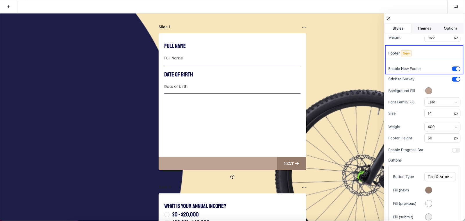 Navigate to Footer Customization: Look for "Style" tab within the Survey Builder interface.