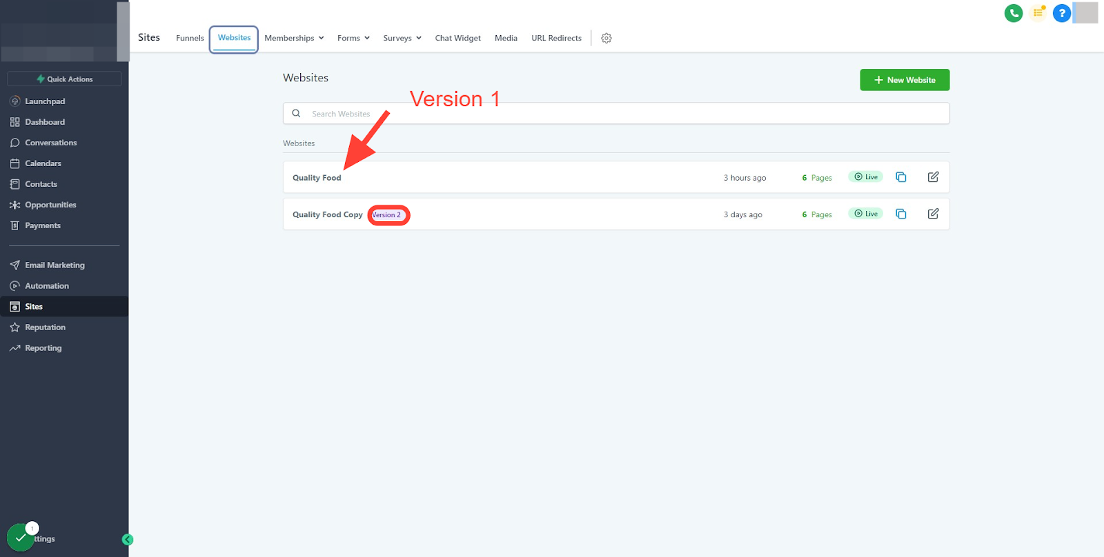 If you are using Version 2 of the Website builder.