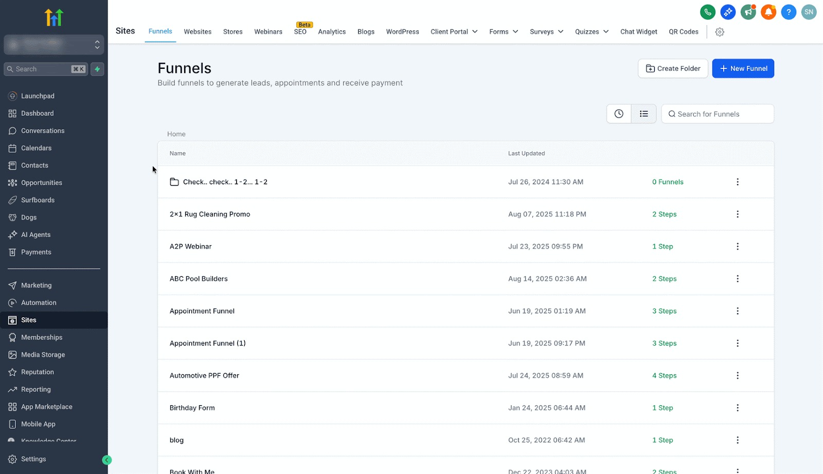 Create a New Funnel/Website or edit an existing Funnel/Website.