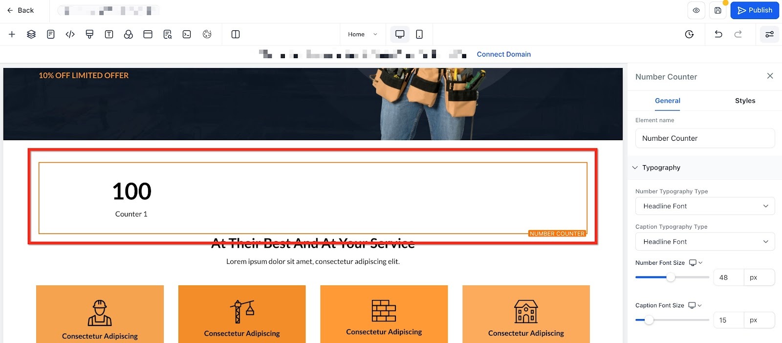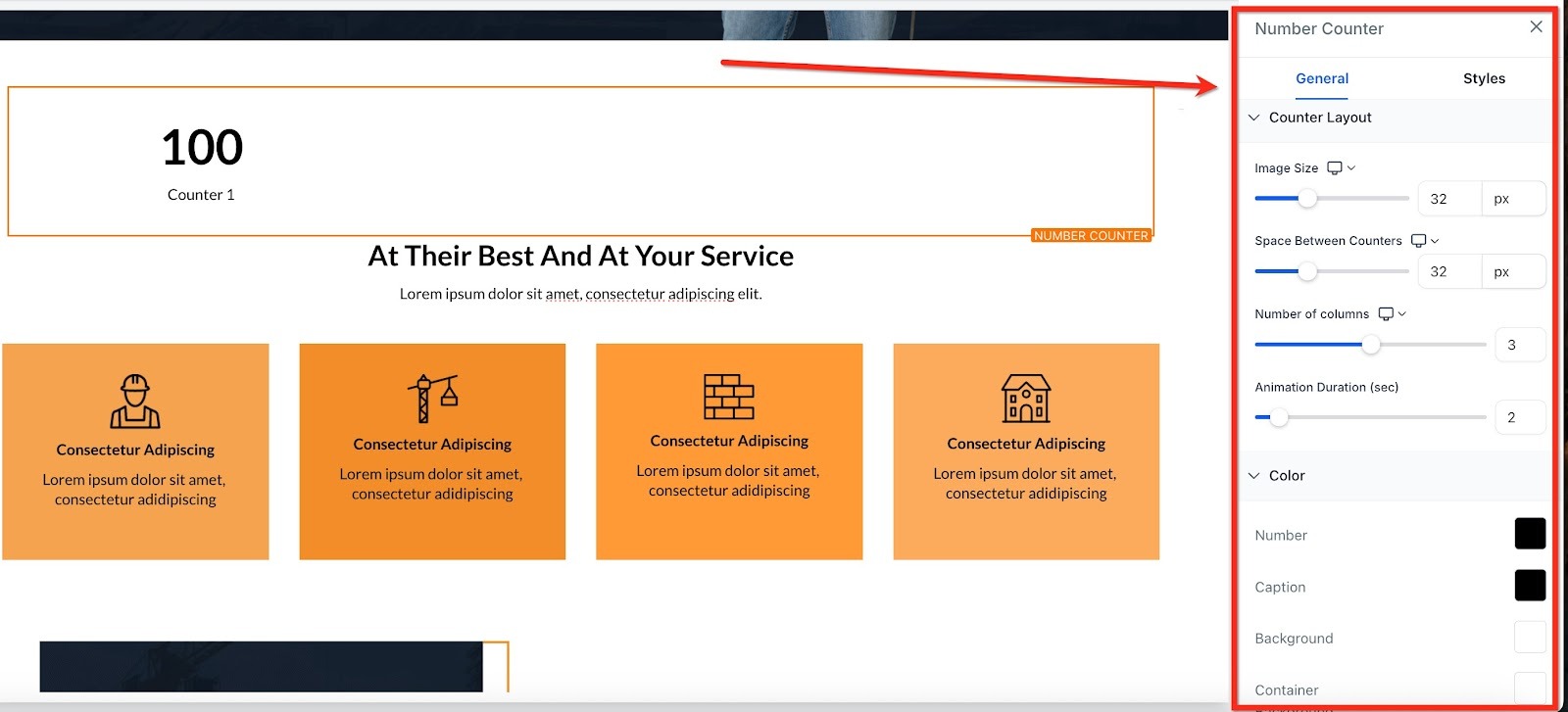 Within the Number Counter settings panel, click Preview Animation to watch the count‑up again without leaving the editor.