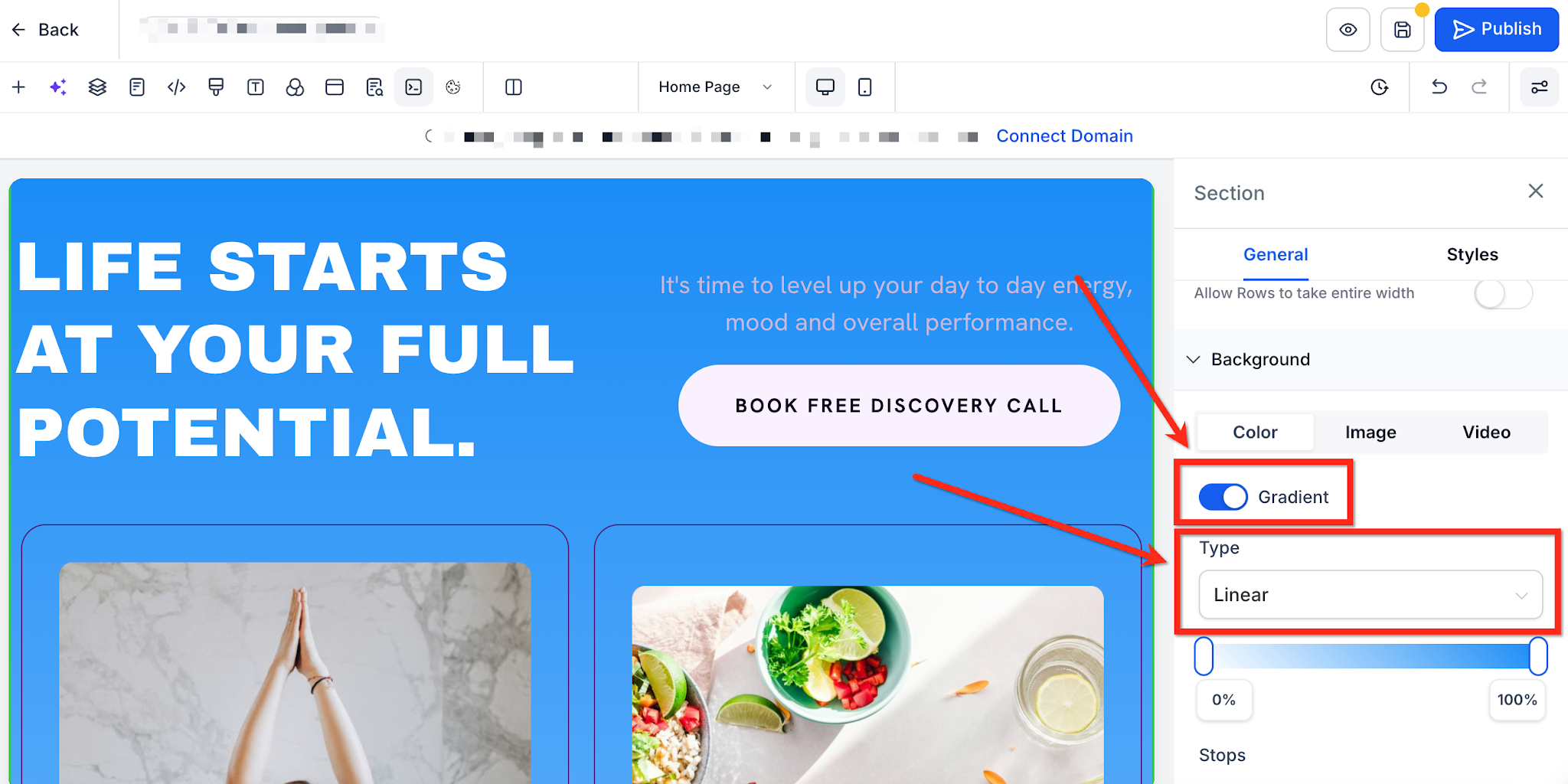 Follow these steps to add a gradient to your background. You can even add multi-color gradients!