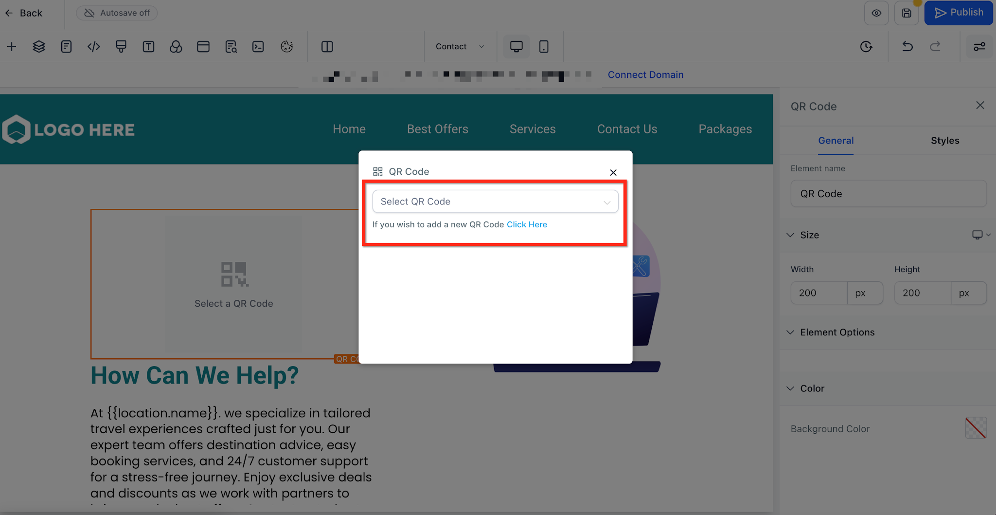 Use the drop down to select the QR Code you would like to add
