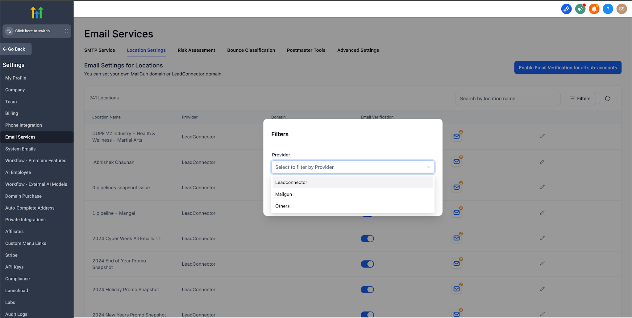 We're excited to announce an enhanced feature that enables agency users to filter sub-accounts based on their email provider.