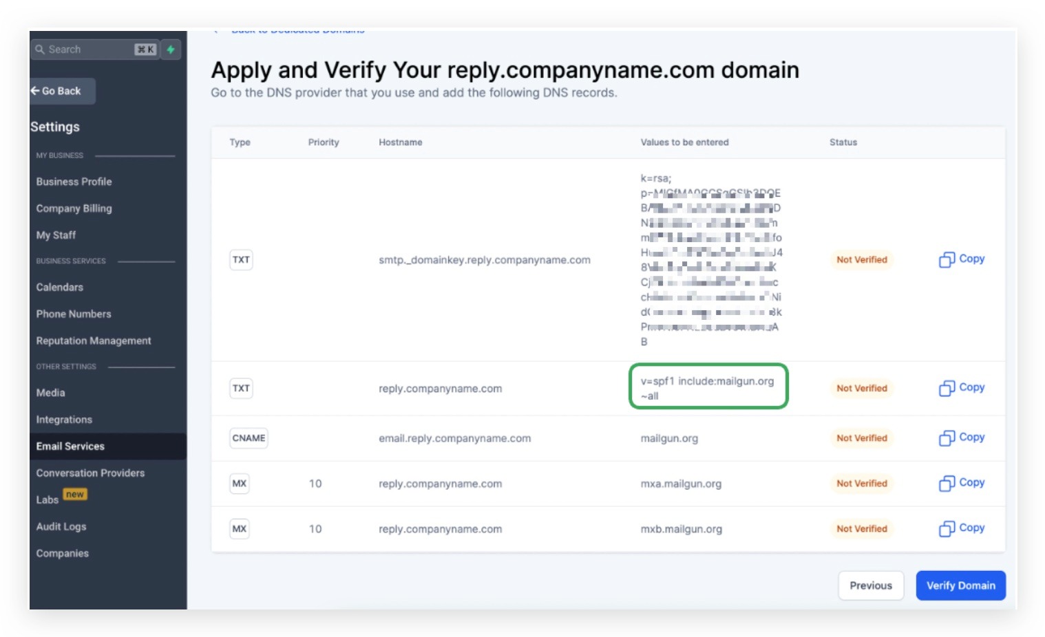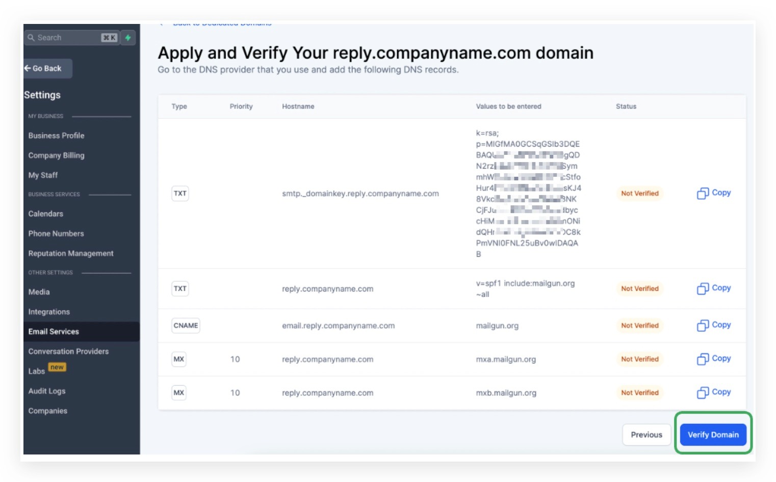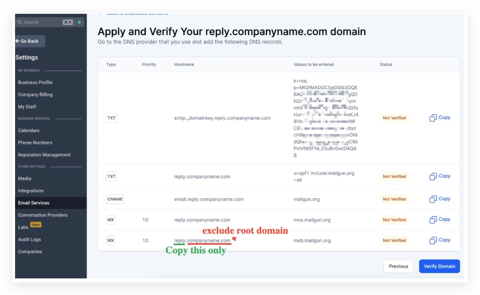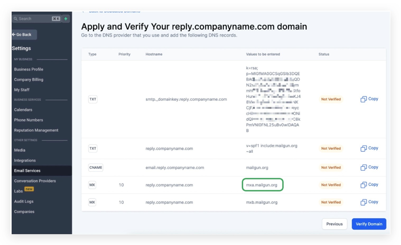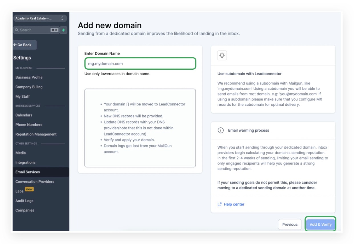 Check out How to move a sending domain from Mailgun to LeadConnector?