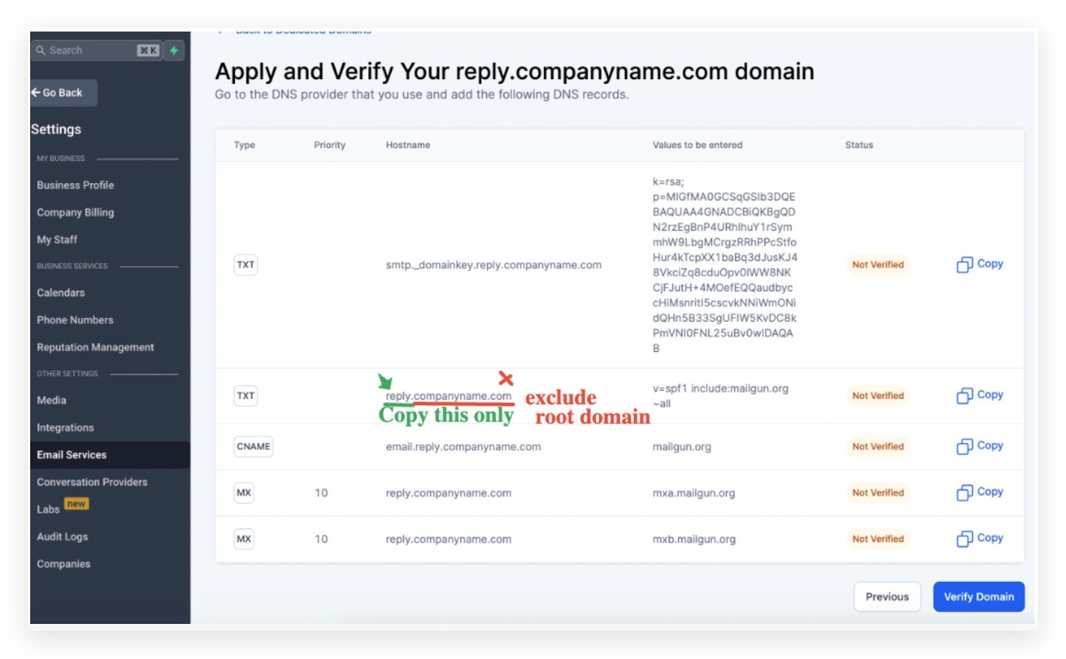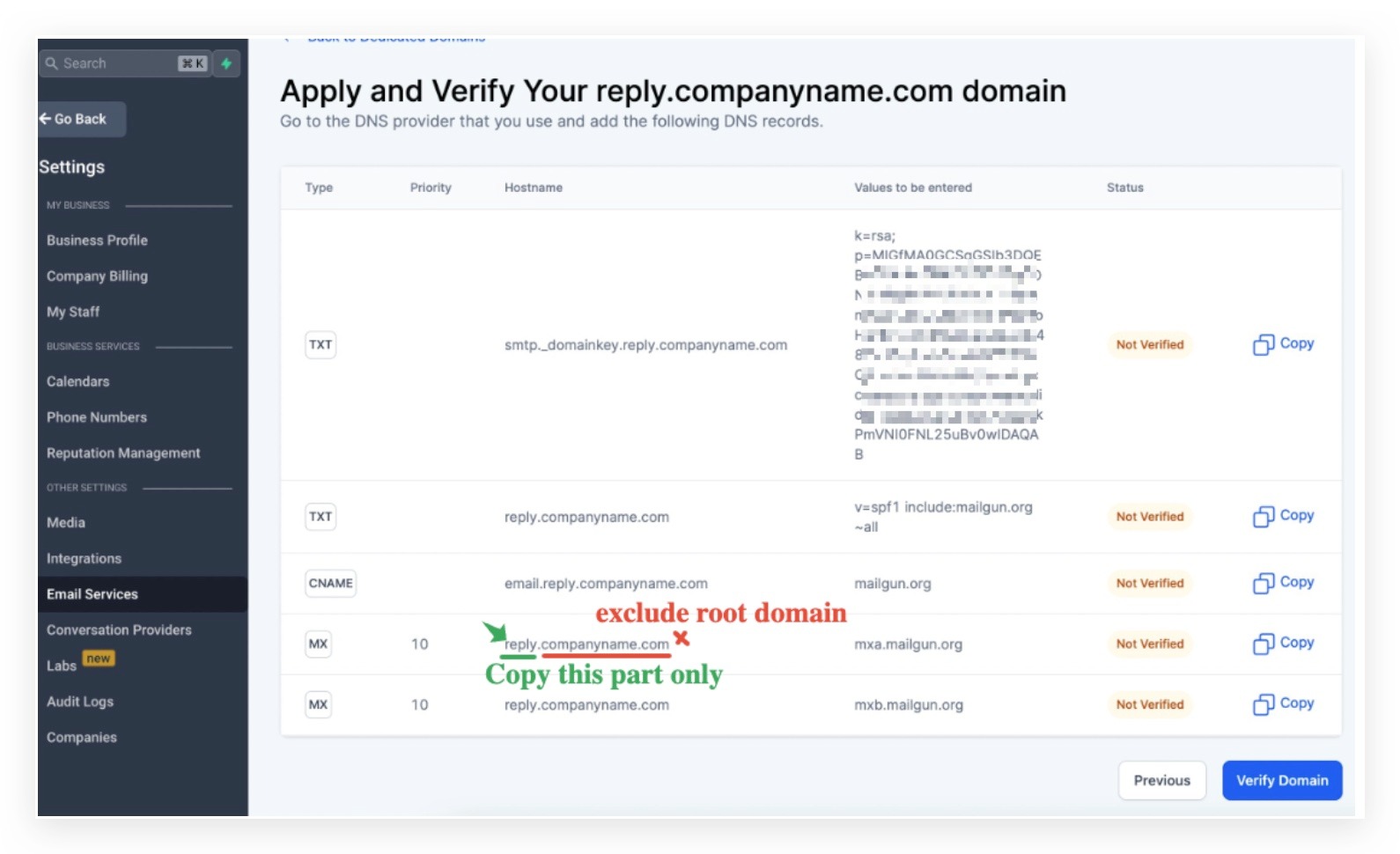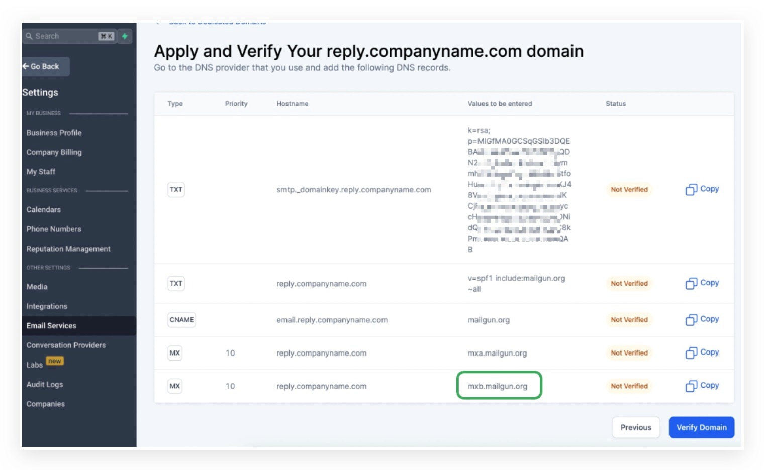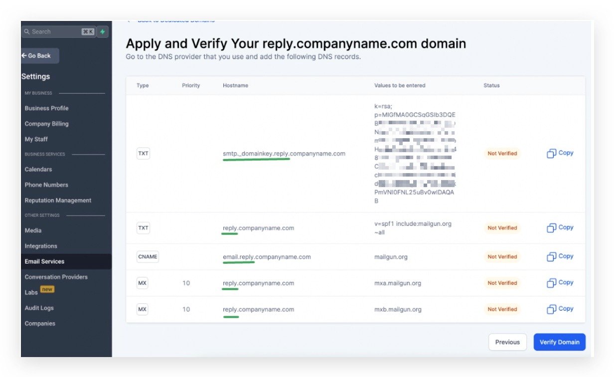 Check out How to move a sending domain from Mailgun to LeadConnector?