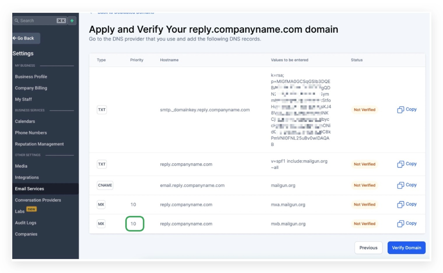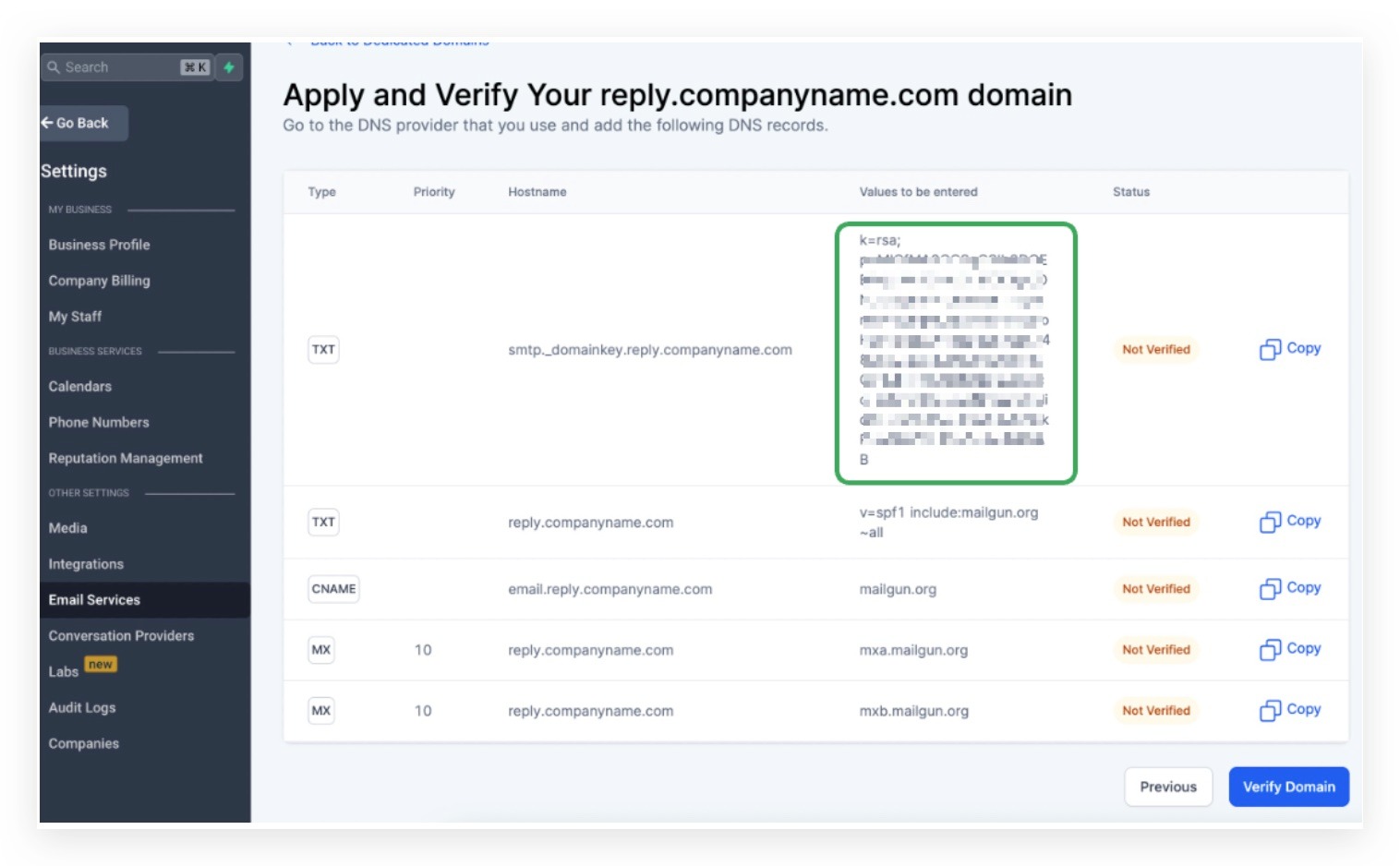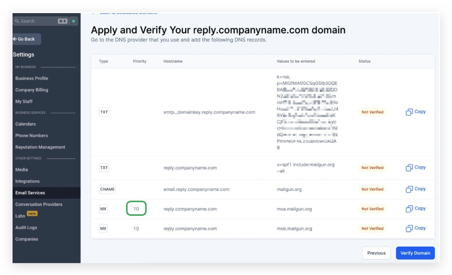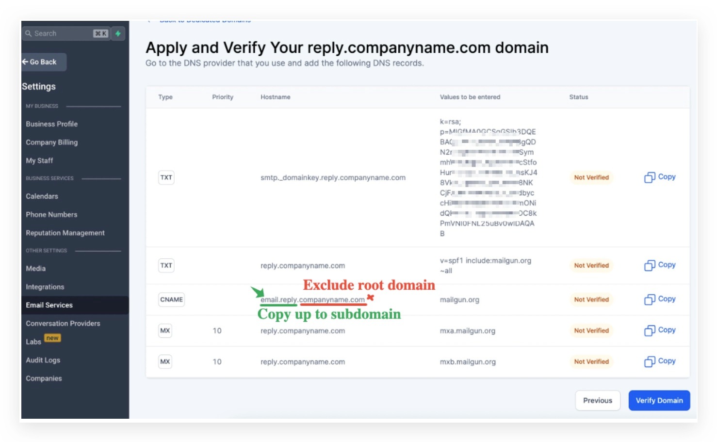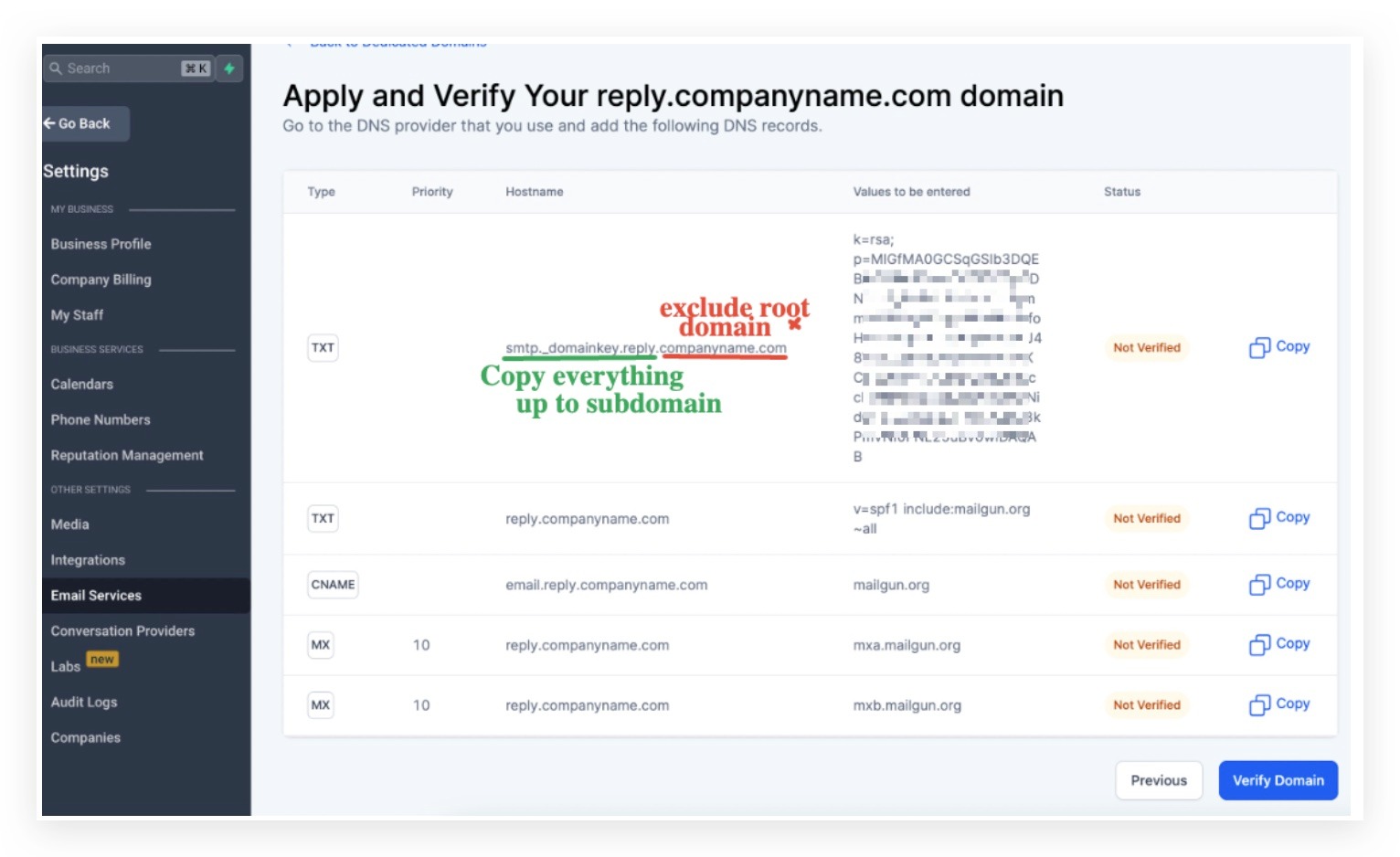 Check out How to move a sending domain from Mailgun to LeadConnector?
