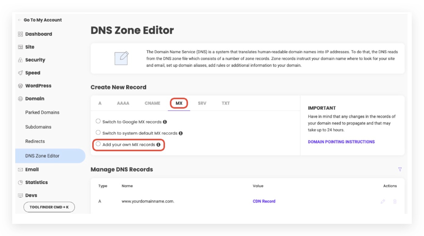 4. Now log in to your DNS records based on where you get the Domain and add the 5 DNS records.